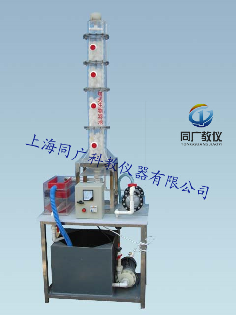 4、塔式生物濾池1套、透明有機(jī)玻璃材質(zhì)、壁厚8mm,? 150×1300mm;(含聚丙烯塑料球1批、布水器1套、)、
