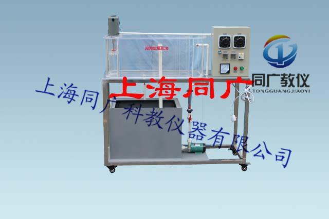 4、雙溝氧化溝1套、透明有機(jī)玻璃材質(zhì)、壁厚10mm,650×450×350mm、帶曝氣裝置