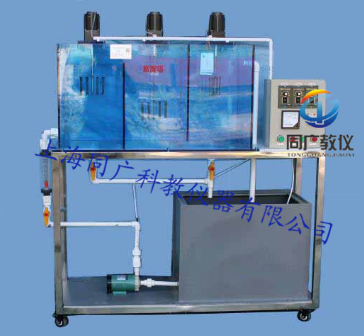 4、絮凝池1套、透明有機(jī)玻璃材質(zhì)、壁厚10mm,500×300×450mm; 帶攪拌槳裝置