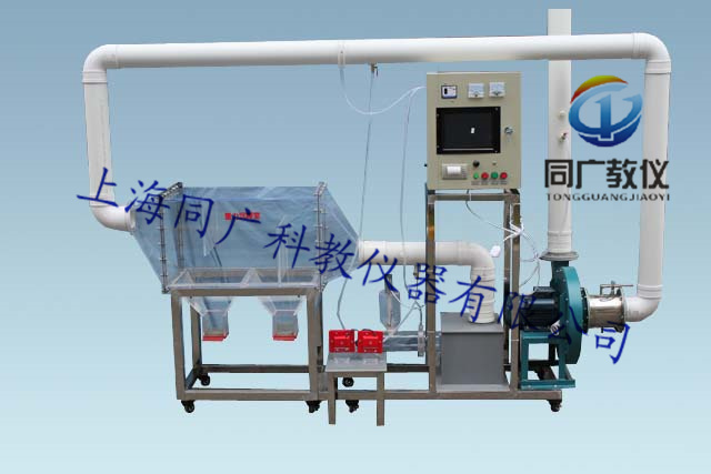 重力沉降室是一種最古老最簡易的除塵裝置。其原理是當含塵氣體進入空室后,利用塵粒自身重力作用使之自然沉降,從而與氣流分離。這種除塵裝置的主要優(yōu)點是結(jié)構(gòu)簡單,價格低廉,耗能少,適用于凈化那些密度大、粒徑粗的粉塵。對于30~50μm的粉塵,去除效率可達60%~80%,但對于小于5μm的粉塵,凈化效率幾乎等于零。目前僅能作為高效除塵器的預(yù)處理裝置。本實驗系統(tǒng)主要用于演示重力沉降過程的原理。