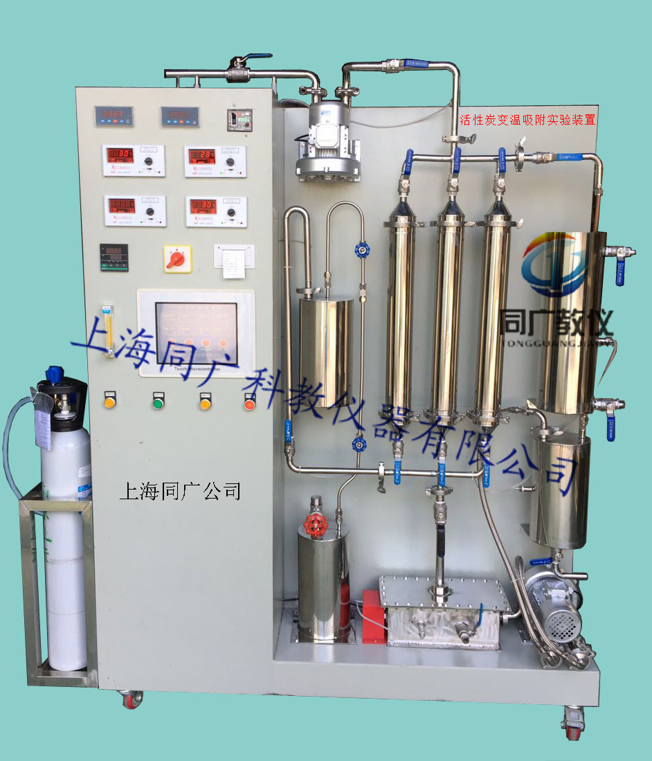 活性炭吸附熱空氣再生系統(tǒng)流程如附圖所示。系統(tǒng)包括主風(fēng)機(jī),有機(jī)氣體發(fā)生系統(tǒng),氣體混合緩沖罐,吸附塔,空氣加熱器和冷凝回收系統(tǒng)及回收系統(tǒng)循環(huán)風(fēng)機(jī),數(shù)據(jù)自動(dòng)采集系統(tǒng)和控制箱等。全系統(tǒng)主要由不銹鋼塔罐和管線構(gòu)成,可進(jìn)行有機(jī)氣體吸附和熱解析的過(guò)程試驗(yàn)。系統(tǒng)還配置了一座有機(jī)玻璃制吸附塔供學(xué)生了解固定床吸附塔的構(gòu)造情況。