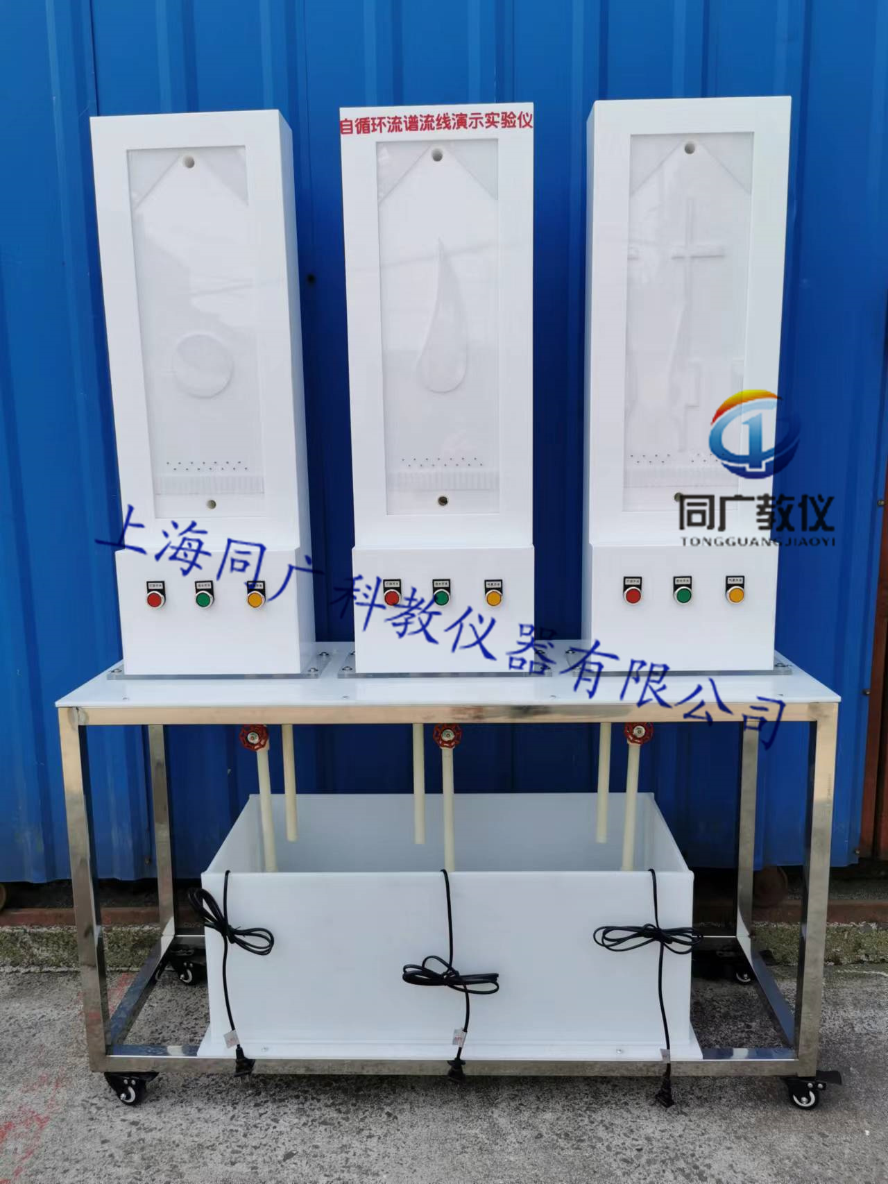 PVC板循環(huán)水箱,低噪音防腐水泵,有機玻璃電場水槽,節(jié)能燈,直流穩(wěn)壓可調(diào)節(jié)電源,流線發(fā)生器,控制閥門,圓柱形、機翼形、突擴突縮試件各一個,可移動臺架等。 外形尺寸:900×400×1000mm、工作電壓:220V 功率:200W、可移動臺架等。
